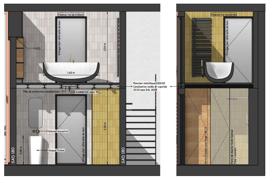 conceptiontechnique #planamenagement #faience #eclairageindirect